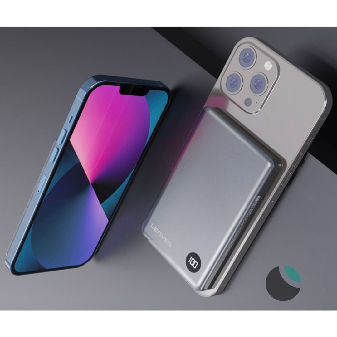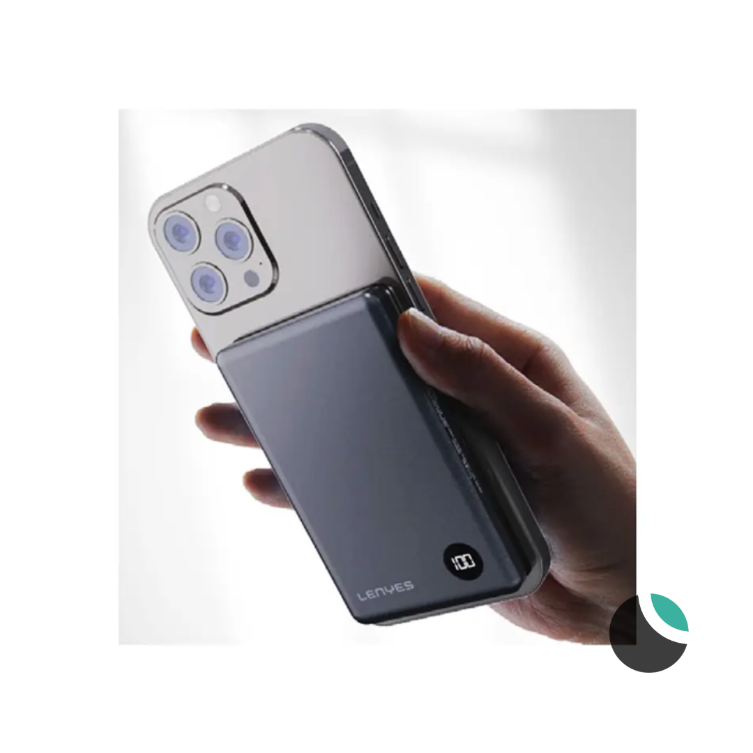 Bateria Portátil Magsafe Lenyes PW037D, diseñado para quienes están siempre en movimiento, combina elegancia y funcionalidad en un tamaño perfecto para llevar en el bolsillo.