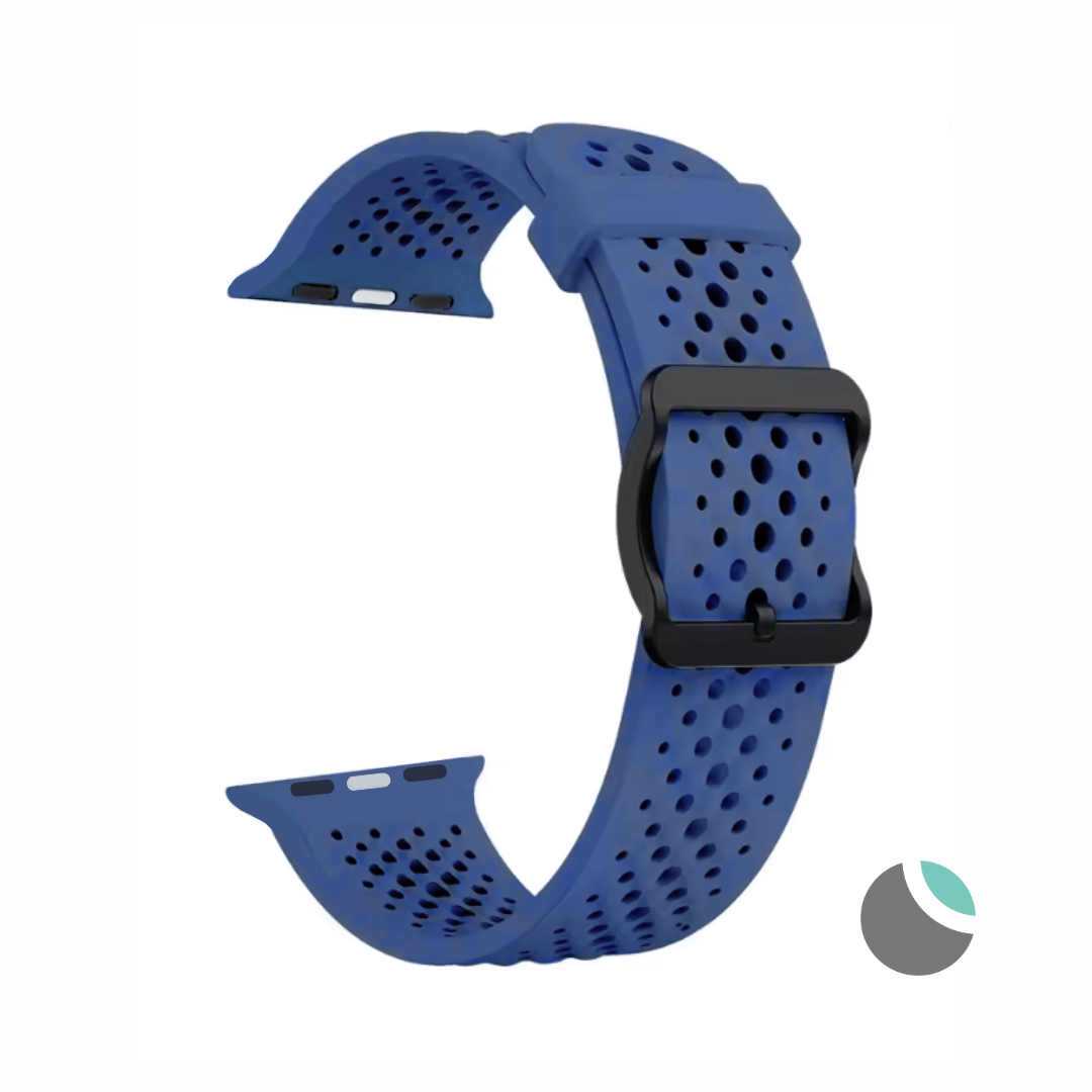 Correa deportiva para Apple Watch de material fluoroelastómero, de silicona suave, una banda duradera para aquellos con un estilo de vida activo. El resistente material de fluoroelastómero está diseñado con una serie de perforaciones para permitir la transpiración cuando hace ejercicio. La banda es fuerte pero se siente suave y cómoda en tu piel. Se fija a la muñeca mediante un cierre de hebilla con pasador.